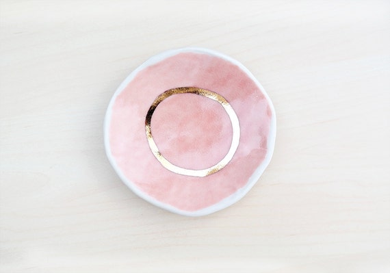 Pink Gold Porcelain Ring Dish Bridesmaid Gift Jewelry Dish Or Vanity Tray Wedding Party Gift Engagement Ring Dish