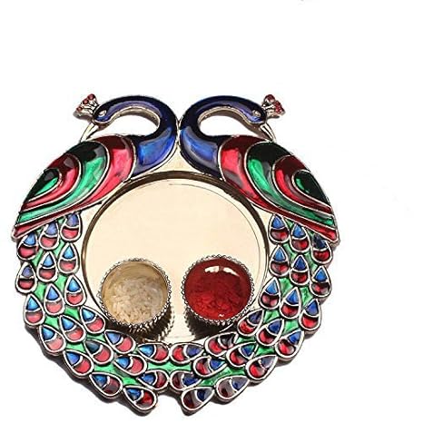 Designer Pooja Thali Rakhi Platter Engagement Ring Platter Tilak Thali For Kumkum Chawal With Metallic Finish Pooja Thali With Kumkum Bowl