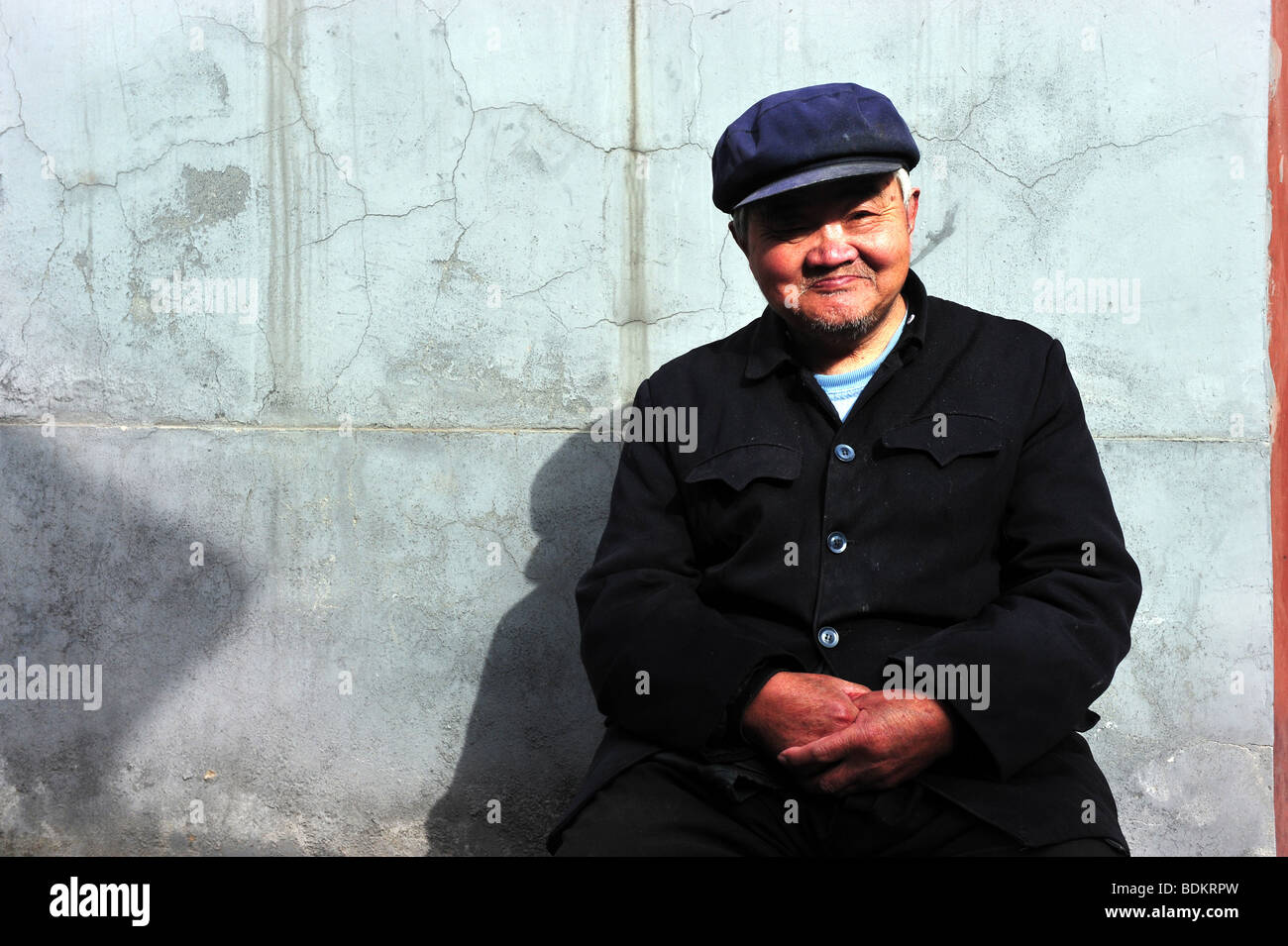 Chinese Old Man Smiles In A Hutong In Beijing China Stock Photo