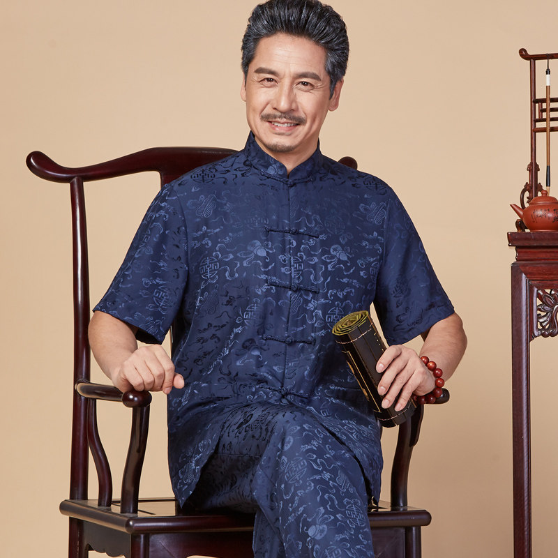 Old Man Tang Suit Male Silk Short Sleeved Suit Chinese Style Daddy