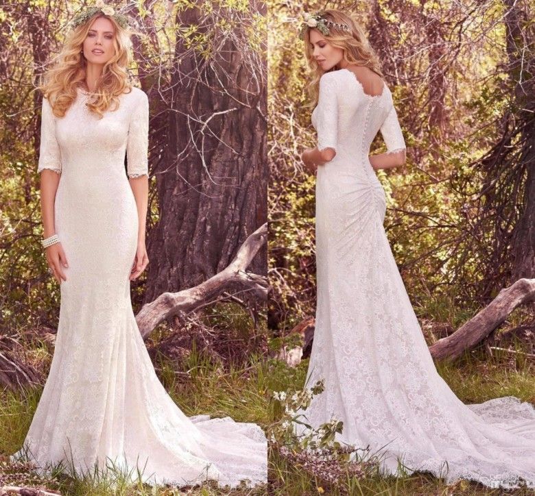 Vintage Mermaid Country Wedding Dresses With Half Long Sleeves Full Lace Modest Bohemian Berta Bridal Gowns 2019 Custom Made