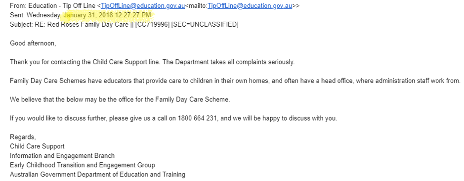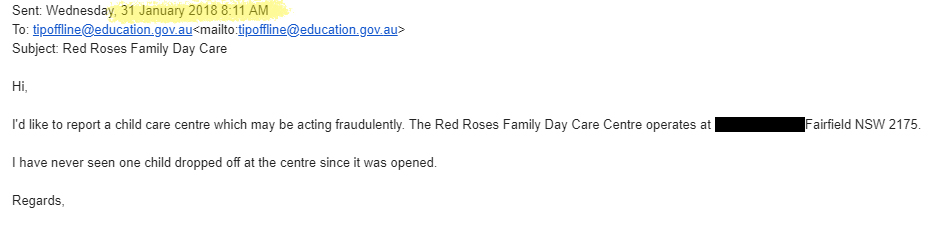 Childcare Provider Red Roses Family Day Care Allegedly Filed
