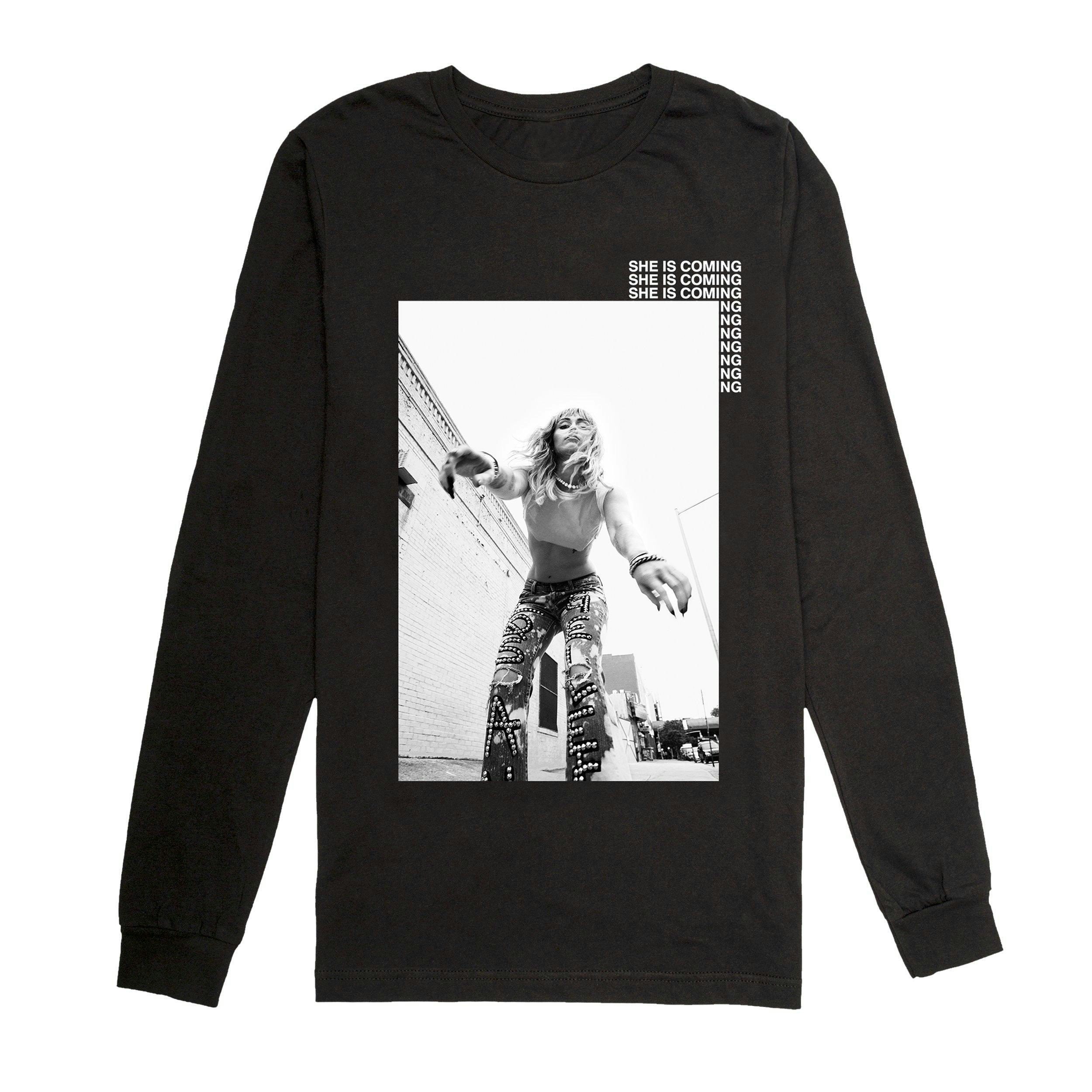 Miley Cyrus She Is Coming Long Sleeve Photo Tee Black Digital Download