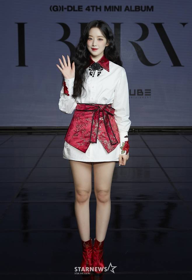 Girls group Yeh Shu Hua poses at a showcase commemorating the release of her fourth mini album I Burn (Ai Bun), which was broadcast live on Online on the afternoon of the 11th. / Photos: Cube Entertainment